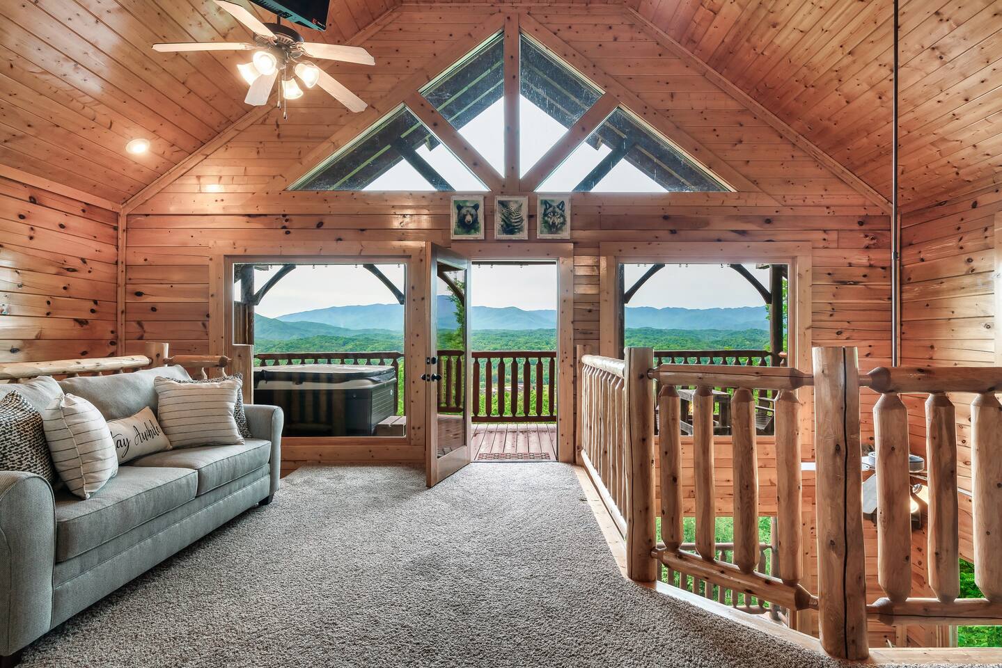 Breathtaking multi-level log cabin is nestled within a picturesque mountain resort, offering stunning views of the Smoky Mountains. Inside, the cabin features a bright and open plan with a full kitchen, a luxurious king bed, game room with loft, and two decks with a luxurious hot tub. Guests will also have access to the resort, including a pool (seasonal) and gym (seasonal). The cabin is just minutes from Pigeon Forge and Dollywood, with an abundance of restaurants, shopping, and attractions.