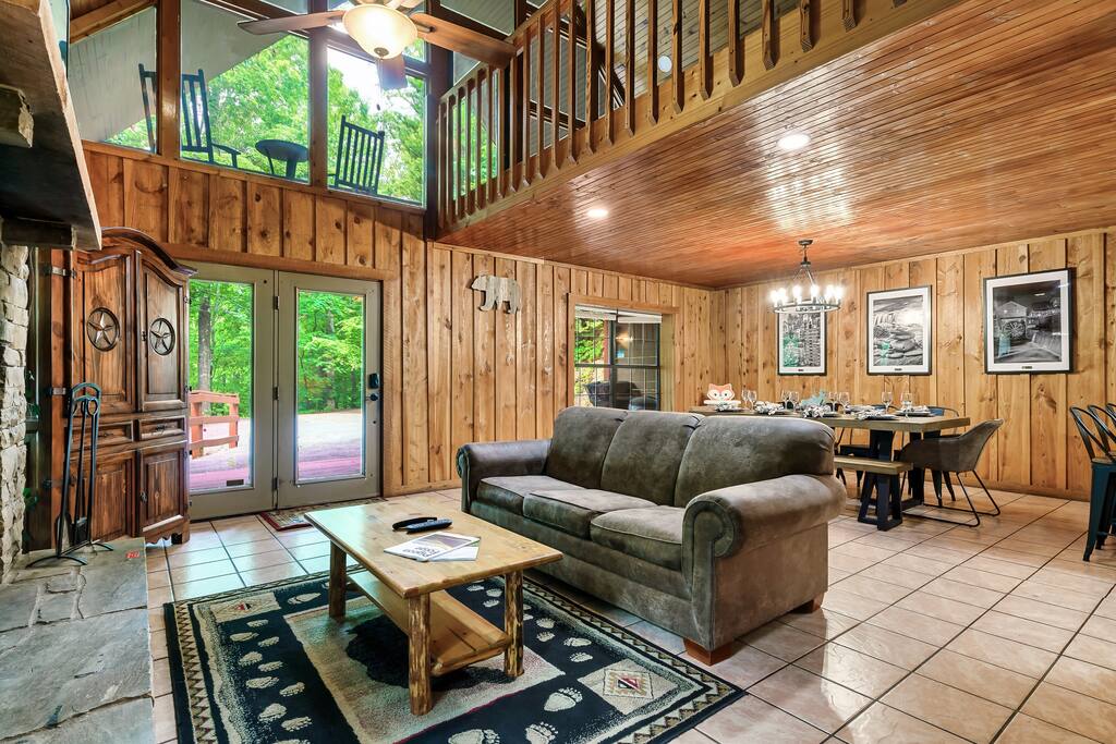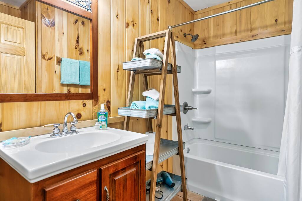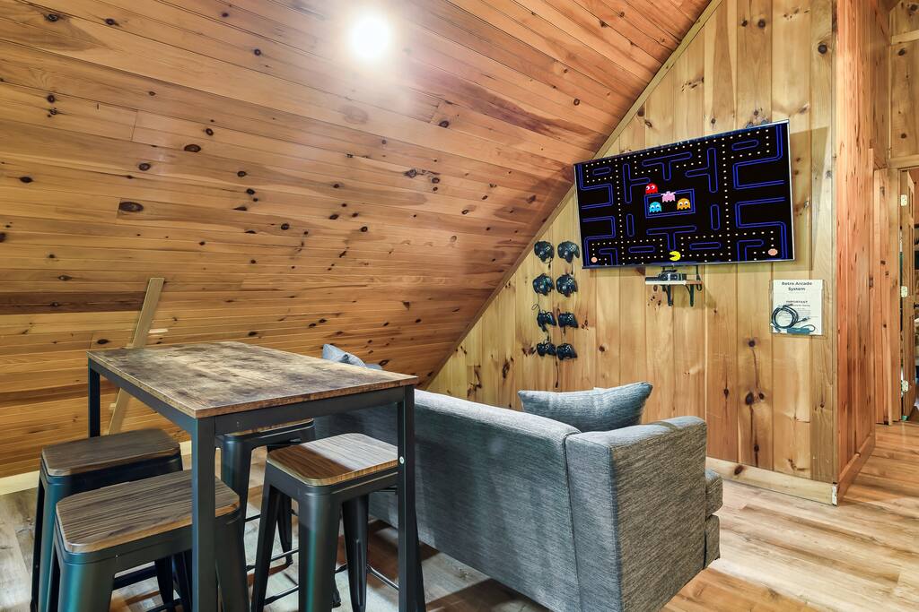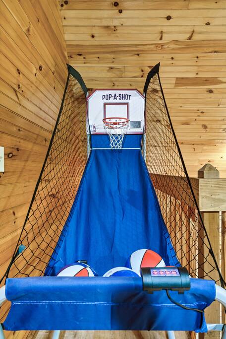 Step into our magical cabin through the easy keyless electronic lock, and get ready for a family adventure like no other! This is our beloved family cabin, where we've created the perfect home away from home for you and your loved ones. Nestled in the mountains yet close to all the action, right next door to Dollywood, it's the ultimate retreat for fun-loving families like yours. As you enter, the open living space welcomes you with a cozy sofas hugging the inviting stone fireplace. Gather 'round the wall-mounted TV with ROKU, packed with endless entertainment for everyone. And guess what? The sofa magically transforms into an extra sleeping space by the crackling fire! Hungry for adventure and delicious meals? Our fully equipped kitchen is ready to make your culinary dreams come true. It even comes with a special starter pack, featuring popcorn bags, salt & pepper, tea, coffee, decaf coffee, and sweeteners. With a full-size fridge/freezer, freestanding oven and stove, microwave, coffee machine, and dishwasher, you'll feel like a pro chef while making memories around the dining table, which seats around 8-10. And don't forget to keep the chef company at the breakfast island bar with four additional seats – quality time guaranteed! There are four spacious and private bedrooms in our family cabin, each designed with love and comfort in mind. The master bedroom upstairs is a luxurious haven, complete with a king bed, ROKU TV, its own thermostat (you're in control!). Upstairs, our second bedroom is a kid's delight, featuring a trundle bed with two twin memory foam mattresses, a ROKU TV, and a cozy reading nook stocked with countless kids' books. Ready for some grown-up relaxation? The third bedroom offers a grand king bed adorned with ROKY TV perched on top of the dresser, perfect for unwinding and making yourself at home. And the fourth bedroom? It's a cozy sanctuary with a comfortable queen bed dressed in quality linens and bedding, and yet another ROKU TV for movie nights snuggled up in bed. Our modern upstairs bathroom features a refreshing walk-in shower and a vanity fully stocked with essential amenities and fluffy towels. And downstairs, the full-size bath with an overhead shower awaits, ensuring everyone feels refreshed after exploring the wonders of the Smokies or zipping down thrilling waterslides. We want you to feel right at home, which is why we grant you full access to the downstairs laundry area. Discover a new washing machine and dryer set, along with complimentary washing powder, an iron, and an ironing board. Look your best, even on vacation! Now, let's venture outside and discover a world of family fun. Picture yourself on the upstairs covered balcony immersing yourself in a captivating book with a cup of tea. Watch out for free-roaming wildlife, where you might spot a playful squirrel. And for the ultimate family bonding experience, head to the newly extended outdoor deck. Follow it as it leads to a beautiful paver fire pit area where comfortable Adirondack chairs invite you to relax under the stars. It’s perfect for evening storytelling and s’mores making. Just a few steps back, a luxurious hot tub and a sizzling BBQ await on the raised deck. Splash, laugh, and enjoy precious moments of privacy together. But wait, there's more! Our brand new game room is a treasure trove of excitement for the whole family. Unleash your competitive spirit on the air hockey table and foosball table. Shoot hoops on the basketball arcade game, challenge each other to gaming duels on the arcade gaming system with controllers, and dive into the action on the 55-inch TV. Get ready for endless laughter and unforgettable memories! So, pack your bags, gather your loved ones, and embark on a once-in-a-lifetime family getaway. Allow our Family to host yours.