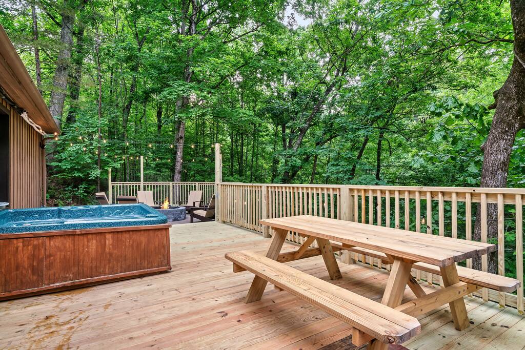 Escape 'Around the Bend' by Dollywood in Pigeon Forge! We're steps away from your Dollywood Vacation! Enjoy our family cabin with a new outdoor firepit, Hot Tub, and a brand new game room. With 4 private bedrooms (2 Kings, 1 Queen, 1 Trundle Twin), a Sleeper sofa, and modern amenities like a new dishwasher and washer/dryer, book your unforgettable stay in the Great Smoky Mountains now!
